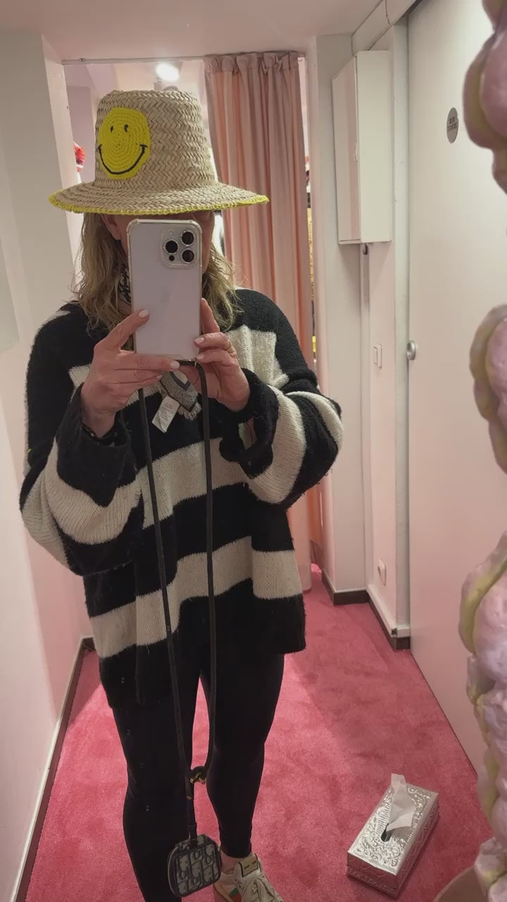 Unser Hut aus geflochtenem Palmblatt mit von Hand gehäkelten Smiley Patch ist ein absolutes Must-Have für alle, die auf der Suche nach einem trendigen Accessoire sind und dabei auch noch auf den Sonnenschutz achten möchten. Mit diesem Hut sind Sie immer top gestylt und ziehen garantiert alle Blicke auf sich! Der Hutrand ist in der gleichen Farbe wie das Motiv umstickt und verleiht dem Hut einen besonderen Look. Der lustige Sommerhut bringt gute Laune und verbreitet positive Stimmung mit seinem gelben Smiley. Dieser Hut ist die perfekte Ergänzung für Ihren Sommerstil und schützt Sie zuverlässig vor der Sonne. Genießen Sie den Sommer, ohne sich Sorgen machen zu müssen! Die passende Clutch gibt es hier.